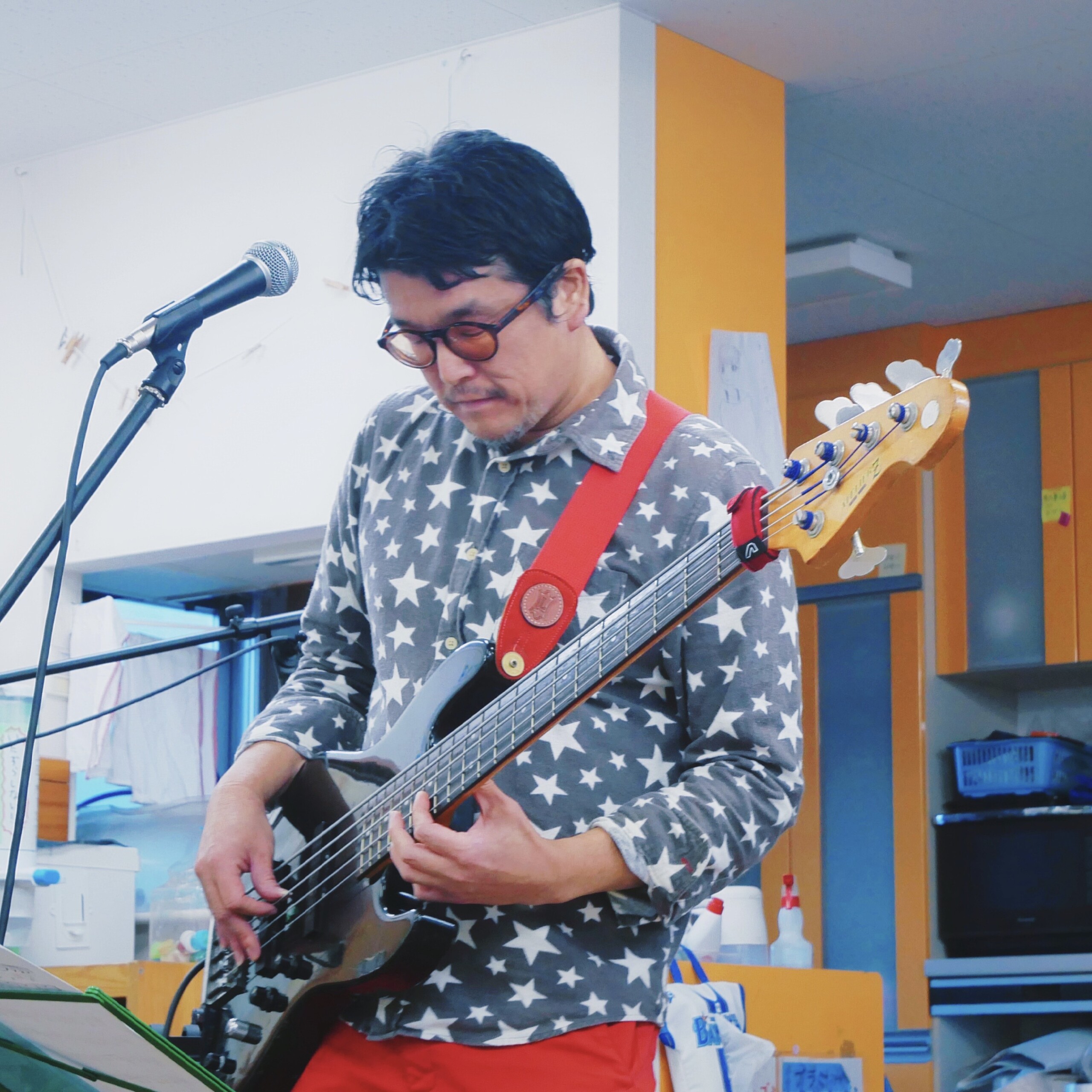 かるがも整体院の院長であり、ベーシストとしても活動。