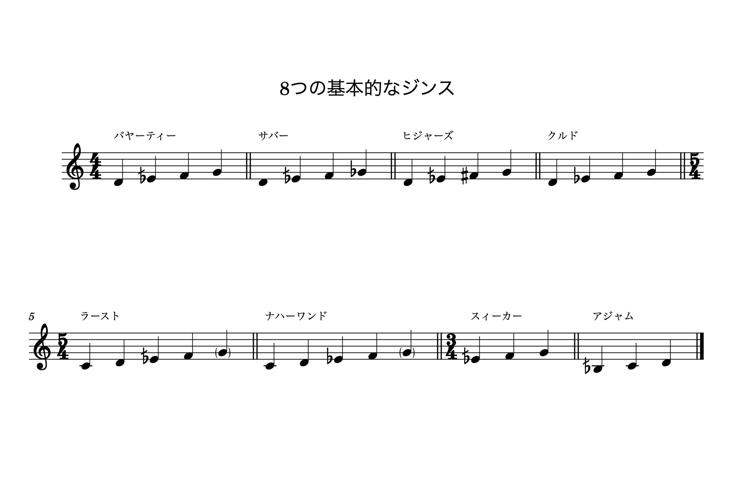 ジンスは3・4・5音の構成(トリコルド/テトラコルド/ペンタコルド)から構成されます。: