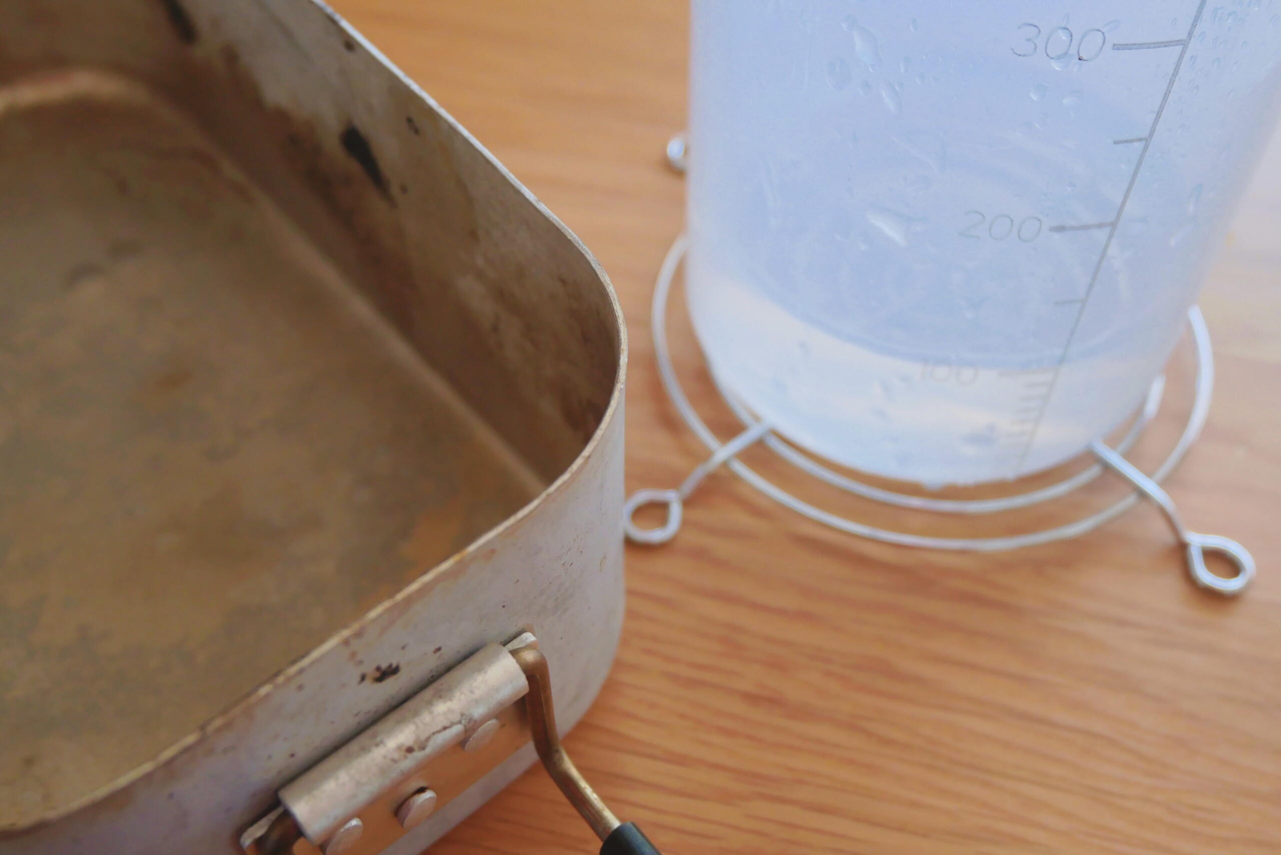 メスティンに底アミをセットして、水を注ぎます。