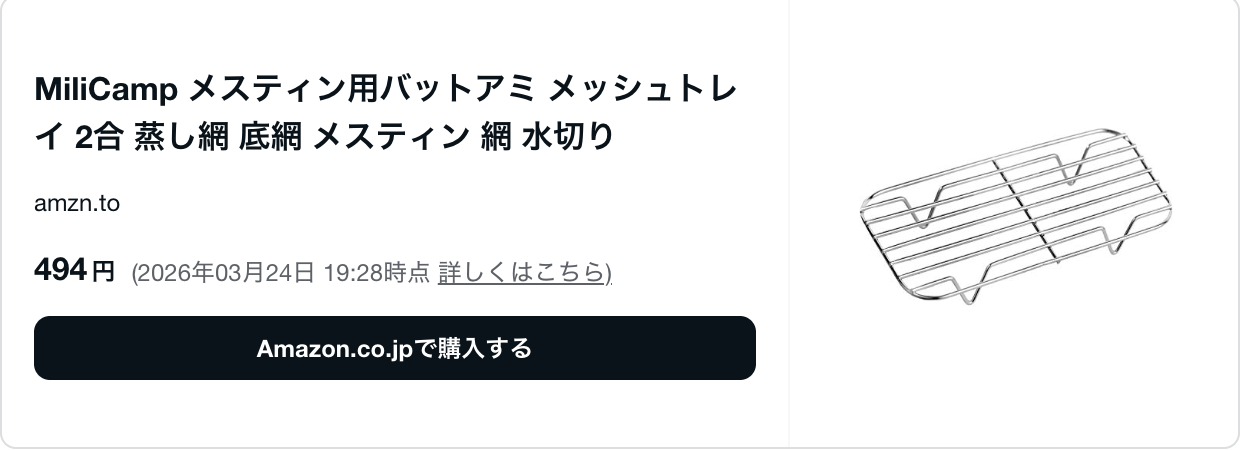 というわけで今回は、メスティンを使った蒸し料理レポートをお届けします。