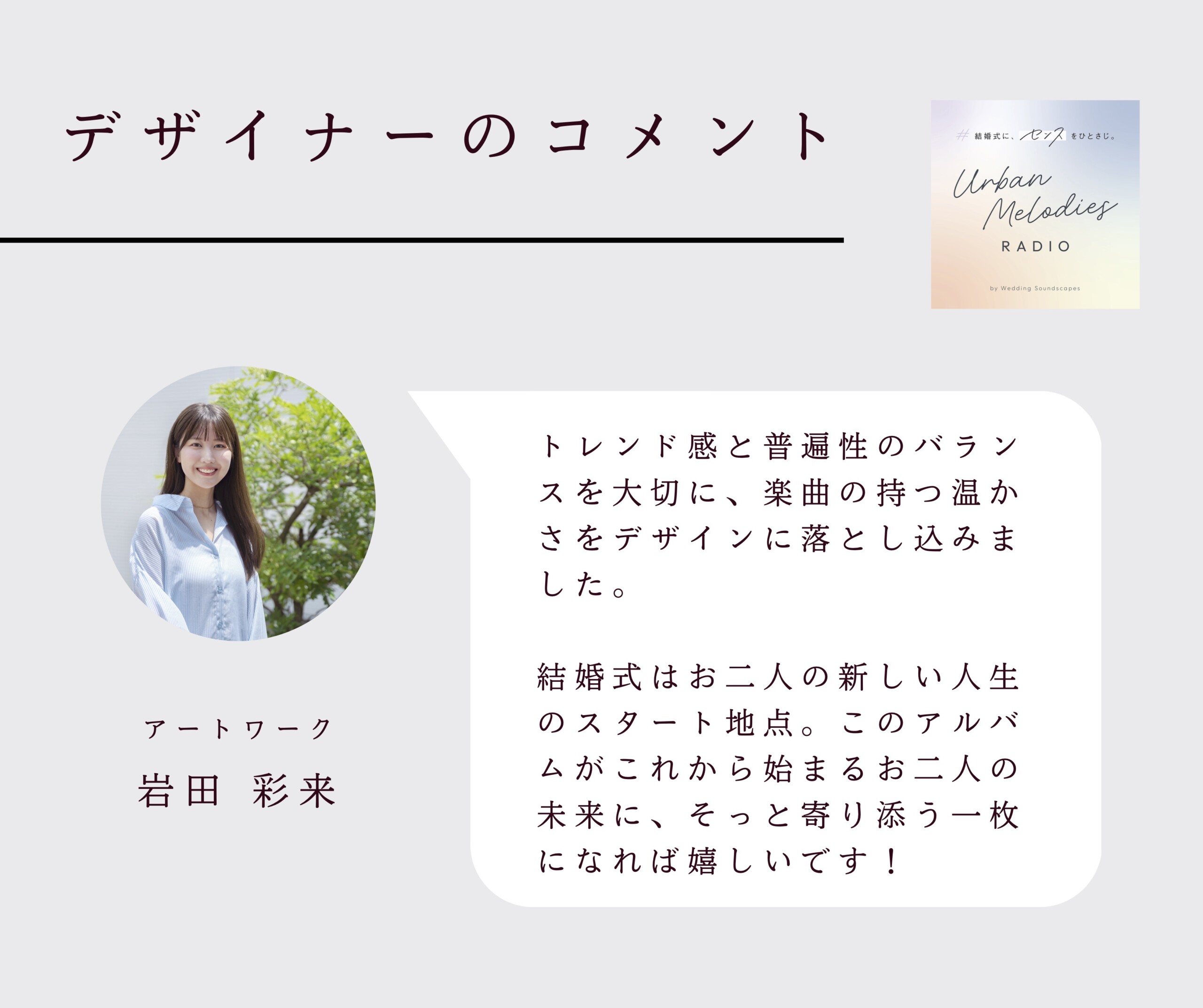 このアルバム制作には、素晴らしいデザイナーの方にもご参加いただきました。今回は、アートワーク担当の岩田彩来さんからいただいた素敵なメッセージをご紹介します。