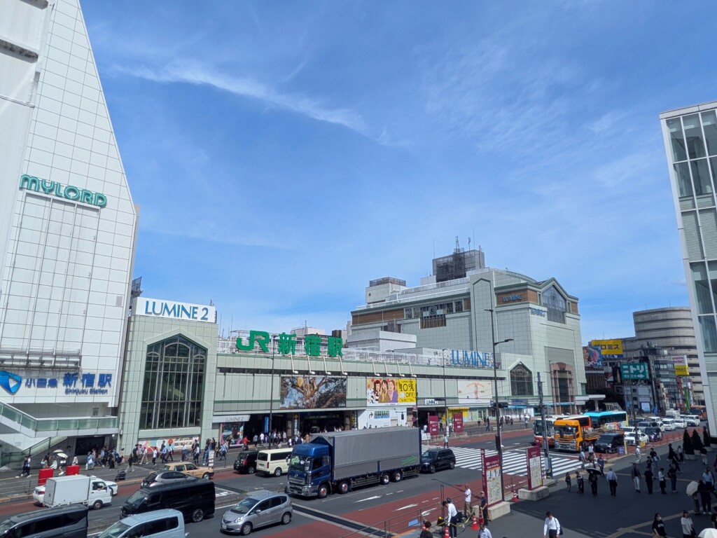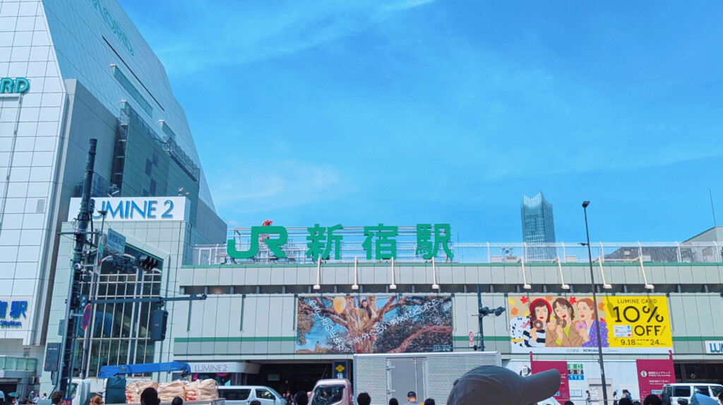 まずは、JR新宿駅の南口を出て、新宿サザンテラスへと続く歩道橋へ。